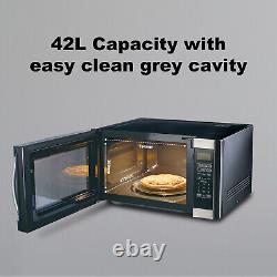 42L 1100W Digital Microwave Oven with Grill 11 Optional Microwave Power Levels Easy Clean. This microwave oven with its (black) stainless steel finish and timeless look can match different kitchen styles.